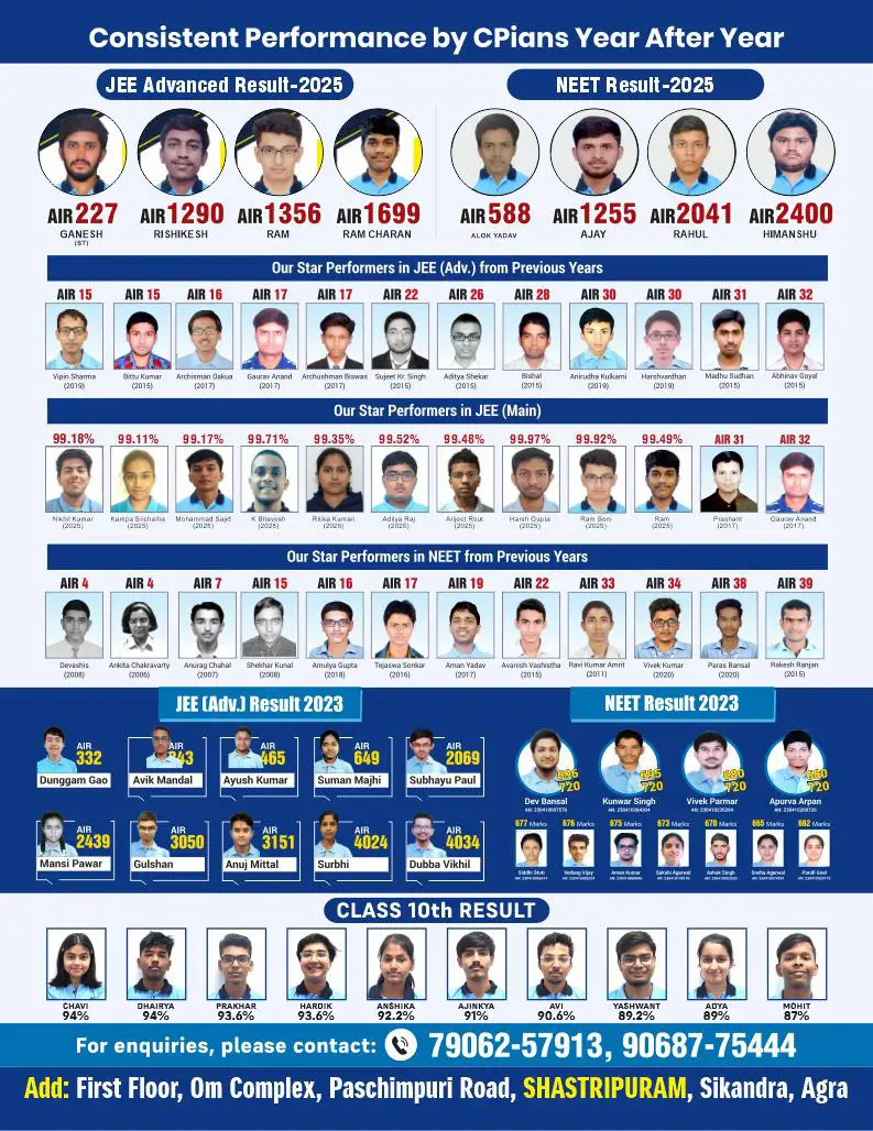 Located in the heart of Agra at Sikandra, Career Point is committed to “Architecting Dreams.” Our mission is to provide high-quality, accessible education that empowers students to crack the toughest entrance exams like JEE and NEET.